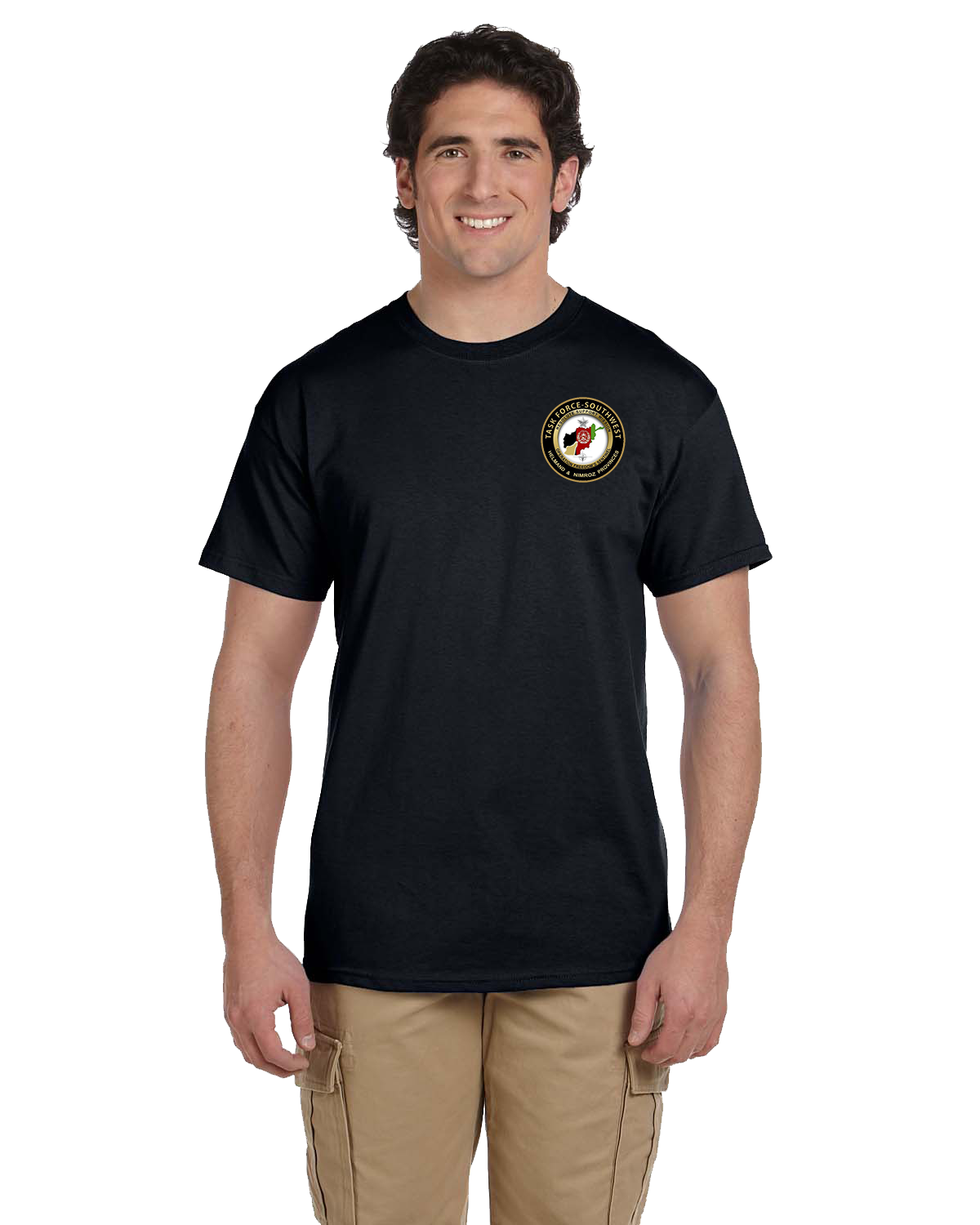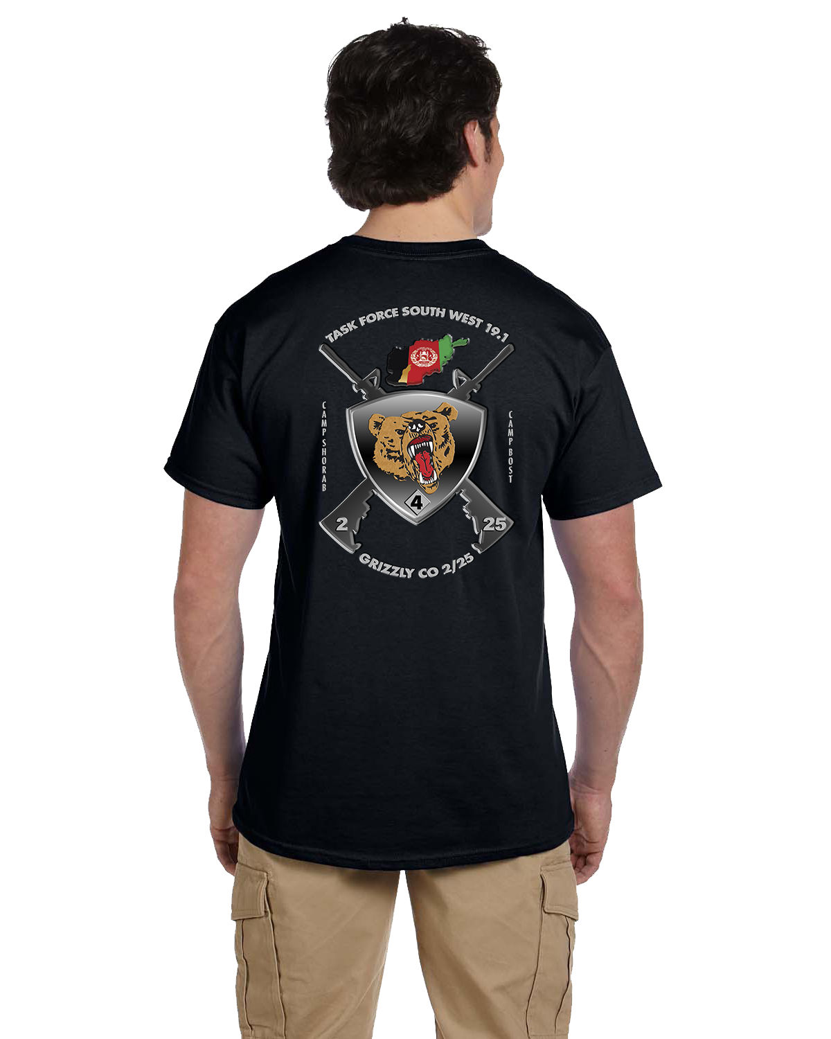 Show your pride in our returning Marines!! This product may be customized by adding a name above and/or a MOS below the insignia on the front.  Also the shirt is available with optional designs for the front, including  either an EGA or a TFSW logo.